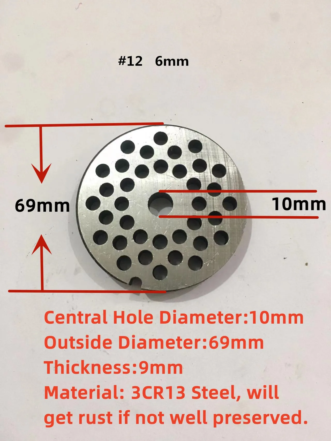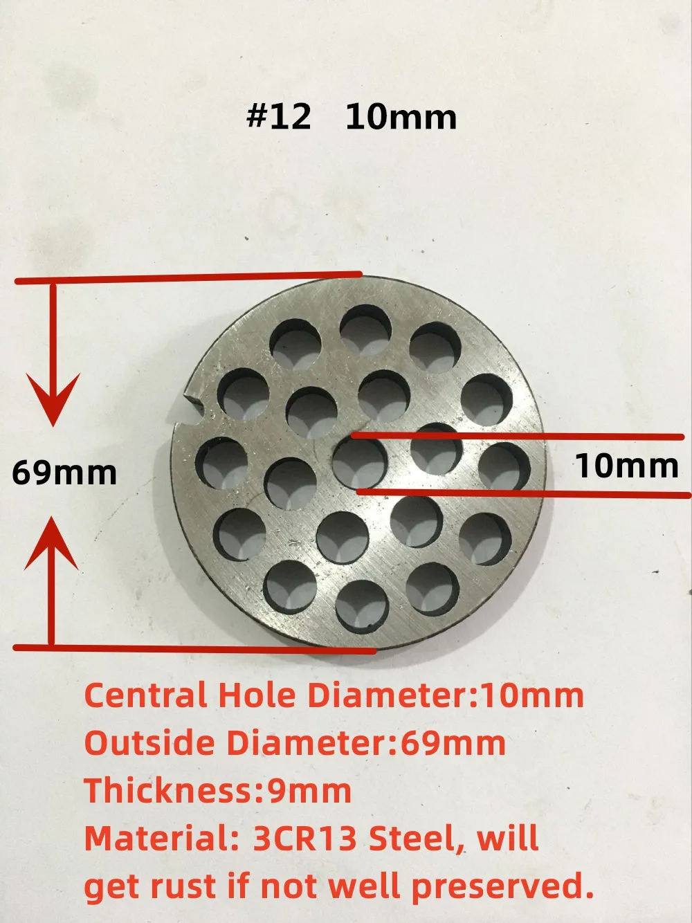 #12 Replaceable Meat Grinder Plate OD 69mm Center 10mm Hole 3-20mm Manganese Steel Chopper Mincer Disc For Mixer Food Chopper