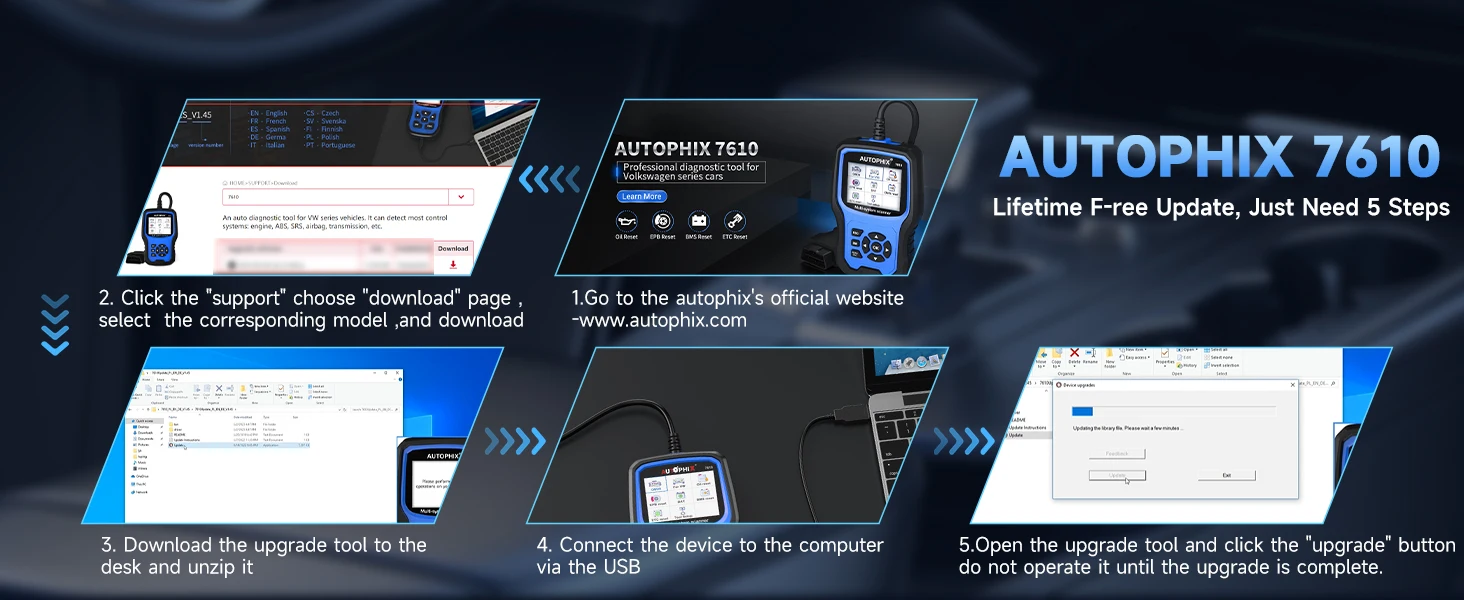 Autophix 7610 automotive scanner, you can enjoy life-time Free software upgrade, which let you stay current with the latest technology and add newest vehicles. Just download the software from Autophix website, then follow on-screen instructions to go. this professional scanner suitable for personal and auto repair shop.