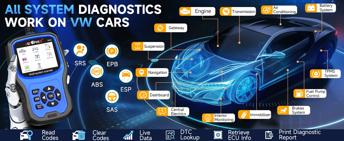 Autophix 7610 Full System Basic Diagnostic Function for VW/AUDI/SKODA/SEAT