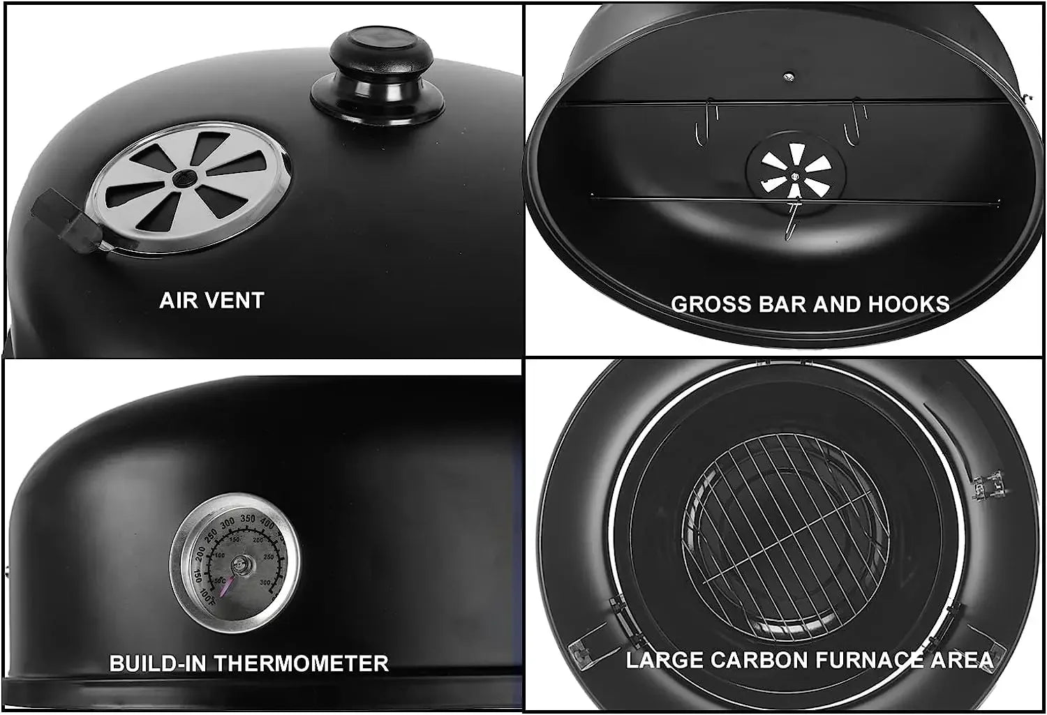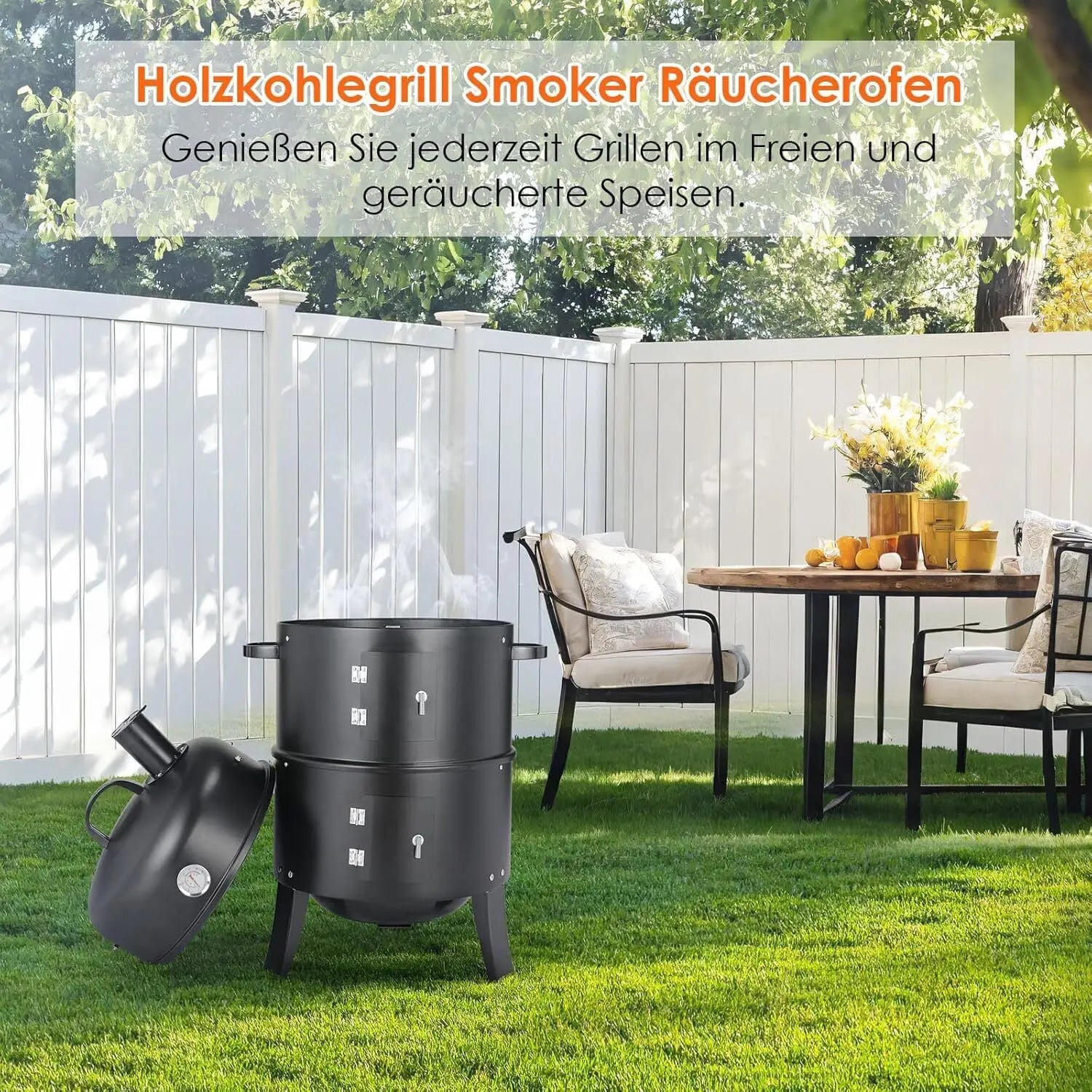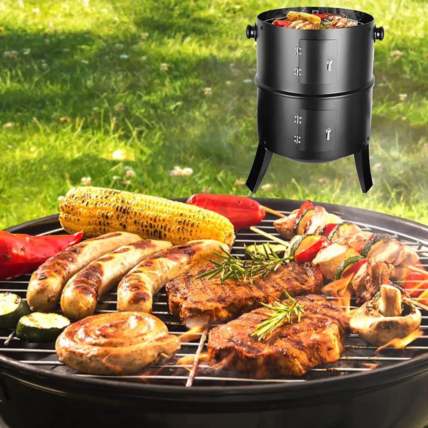 Charcoal BBQ Smoker Grill,3-in-1 Portable Vertical Grill Cooker with Built-in Thermometers & Adjustable Vent Systems for Outdoor