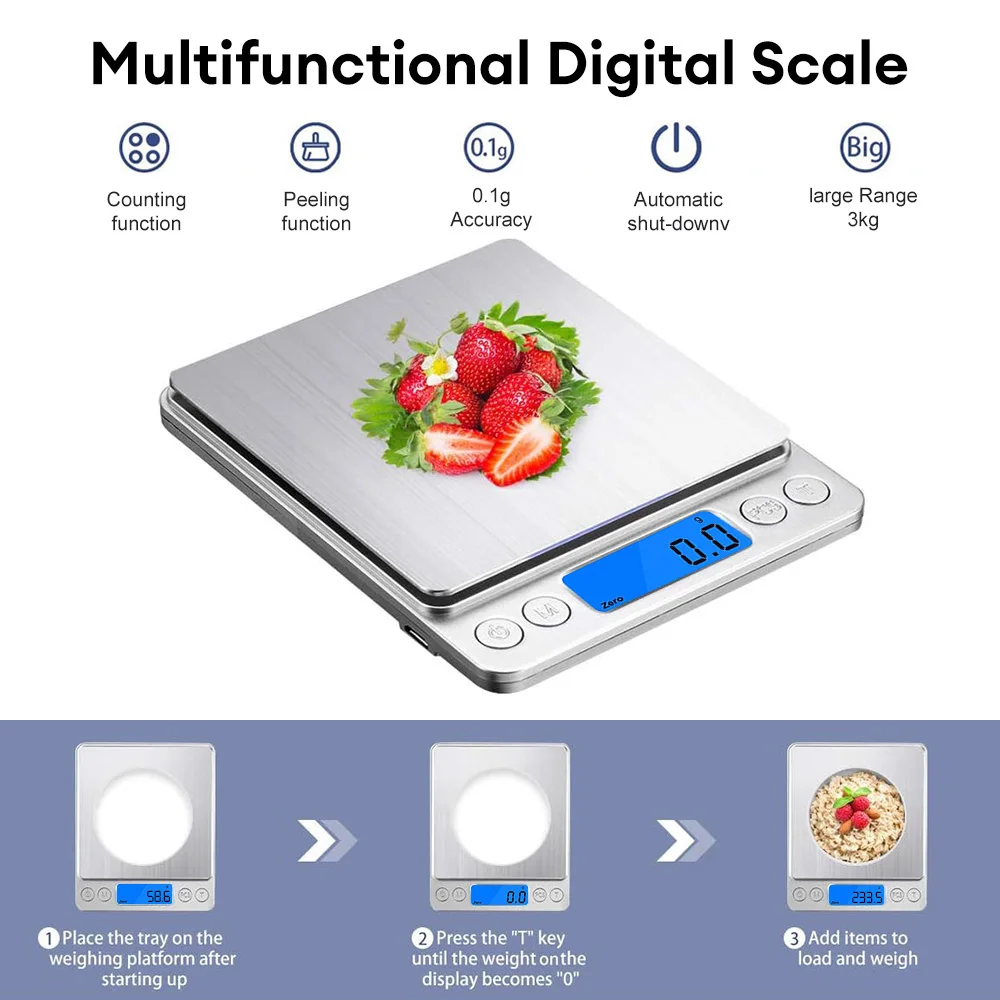 Digital Kitchen Scale 3000g/ 0.1g Small Jewelry Scale with LCD Display Food Scales Home Baking and Cooking Gram Scale