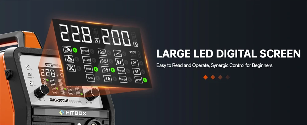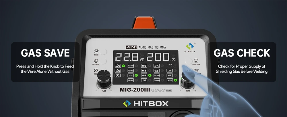 HITBOX 7 in 1 MIG Welding Machine 200A MMA/Gas Flux MIG/Lift TIG/Spot Welding/Spool Gun/Single Pulse Aluminium Welder Home DIY