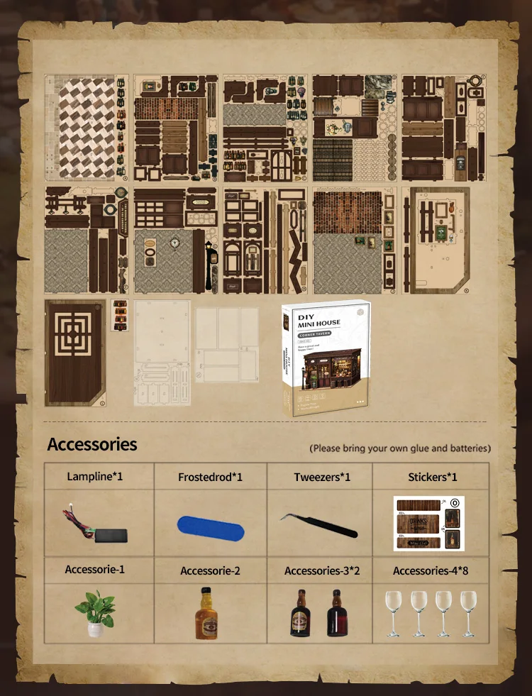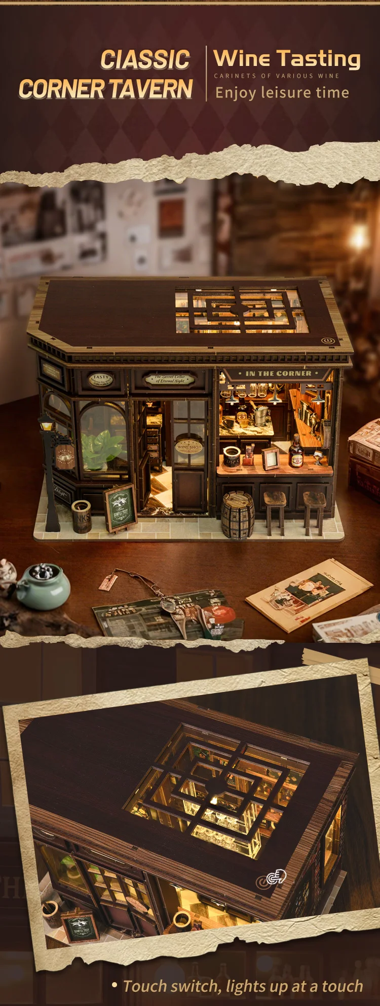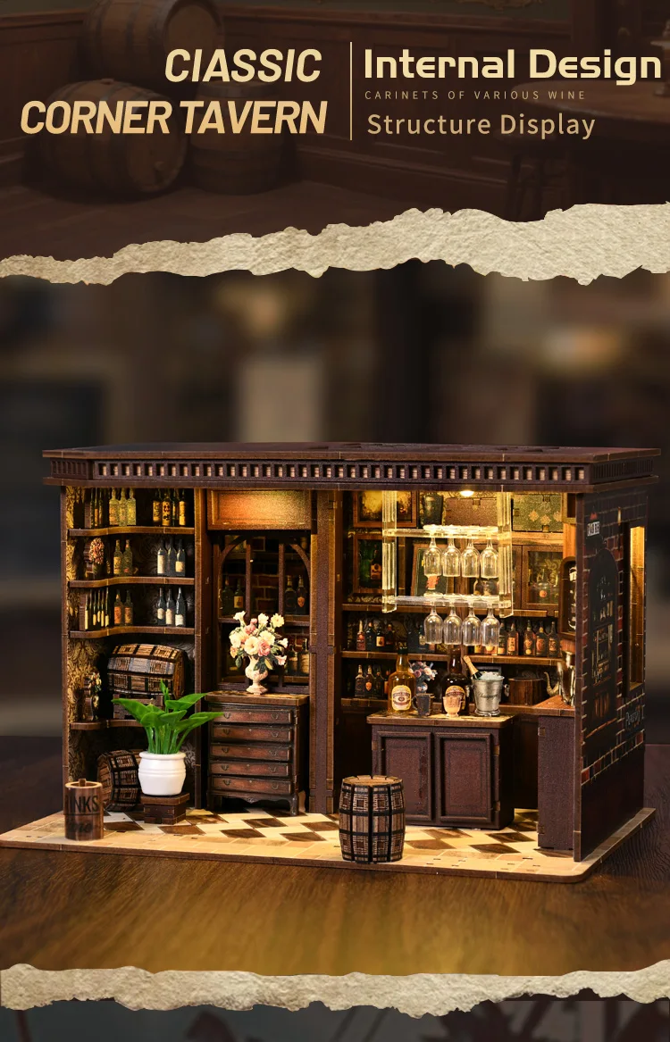 New Corner Bistro Miniature DIY Book Nook - 3D Wooden Puzzle Craft Kit, Christmas & Black Friday Micro Scene Model Gift