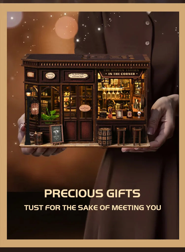 New Corner Bistro Miniature DIY Book Nook - 3D Wooden Puzzle Craft Kit, Christmas & Black Friday Micro Scene Model Gift