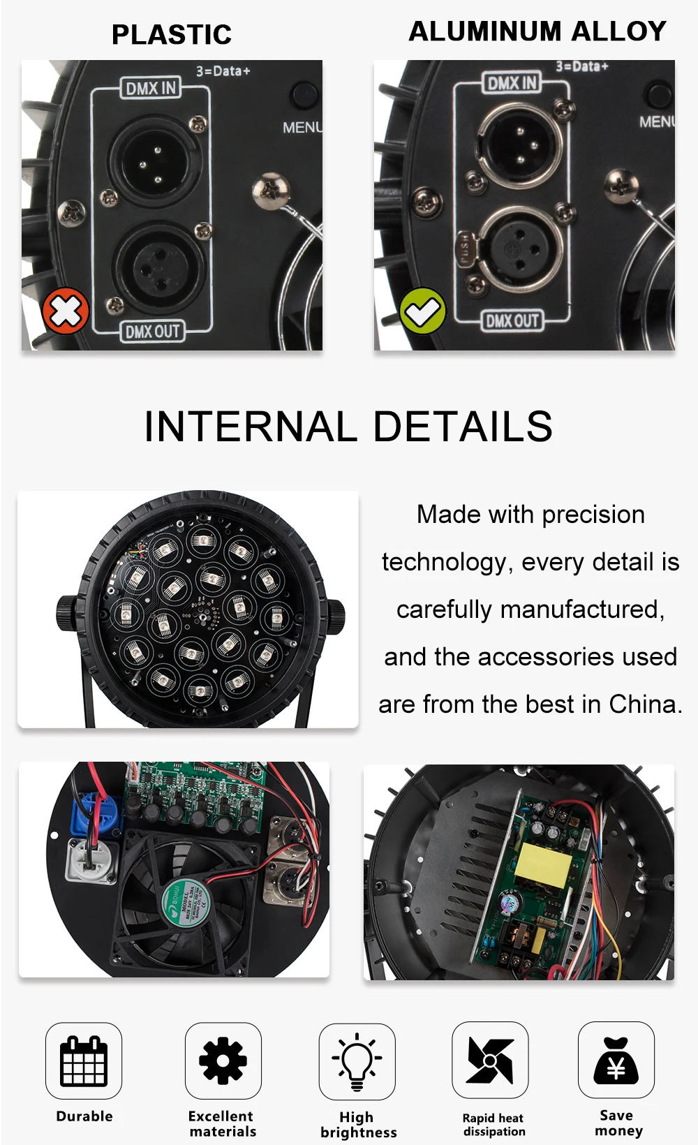 SHEHDS 4PCS Aluminum Alloy LED Flat Par 18x12W RGBW/18x18W RGBWA+UV LED Lighting DMX512 Disco Professional Stage DJ Equipment