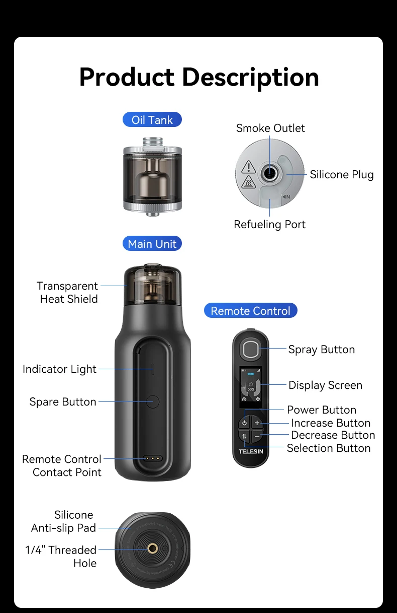 TELESIN Photography Smoke Machine Remote Smoke Effect Portable Smoke Maker with Remote Control Fogger Machine For Video Shoot